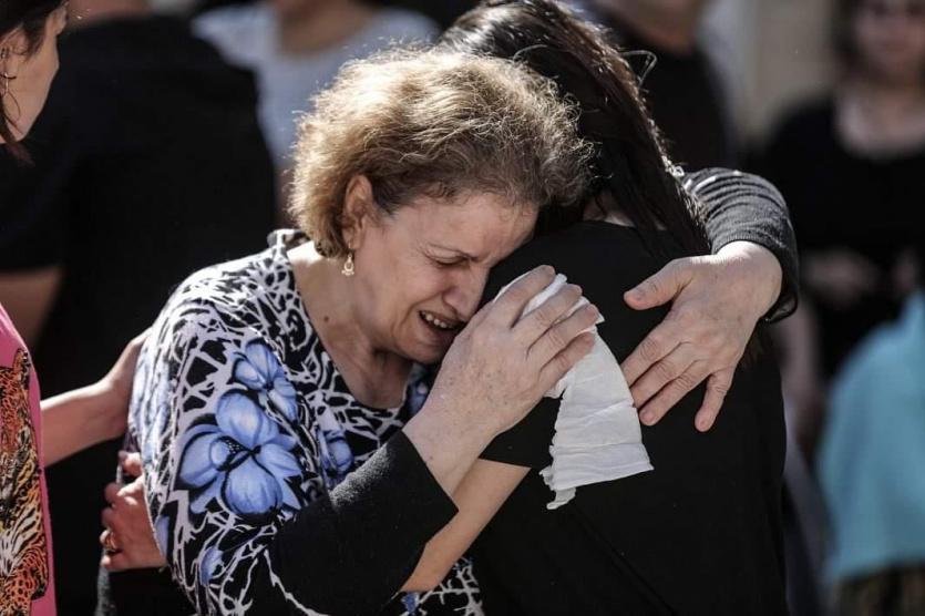 وقرعت الكنيسة أجراس الحزن، قبل أن يترأس المطران أليكسيوس صلاة الجنازة على الجثامين التي سجّيت في باحة الكنيسة، بمعاونة الأب سيلاس حبيب، وبمشاركة الأب يوسف أسعد من كنيسة العائلة المقدسة للاتين، والراهبات، وجمع من المصلين.