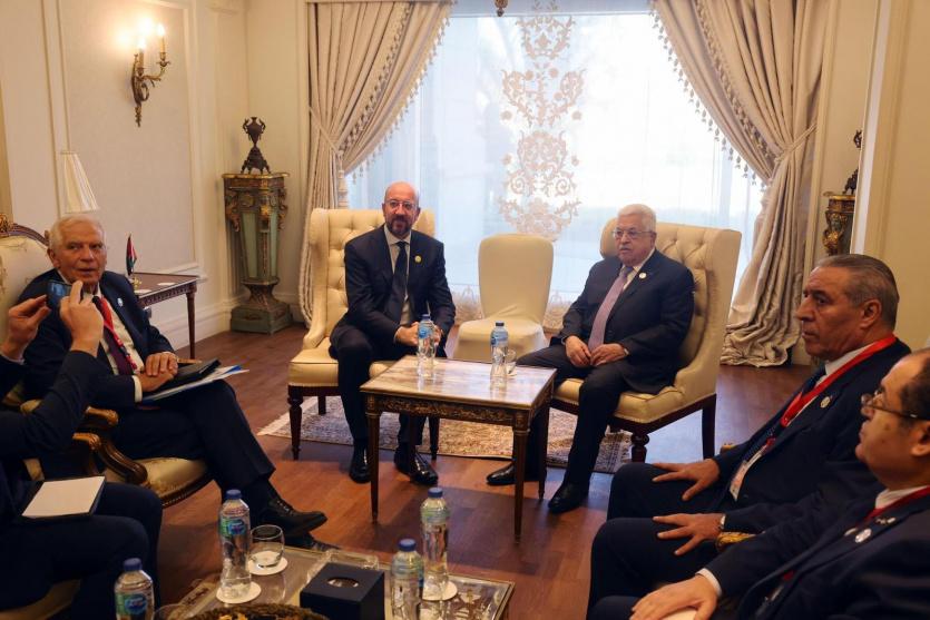 التقى رئيس دولة فلسطين محمود عباس، اليوم السبت، على هامش أعمال قمة "القاهرة للسلام"، التي تستضيفها العاصمة الإدارية الجديدة في جمهورية مصر العربية، رئيس مجلس الاتحاد الأوروبي شارل ميشيل، ومسؤول السياسة الخارجية في الاتحاد الأوروبي جوزيب بوريل.