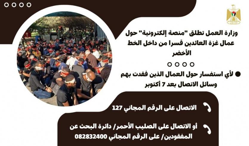 وزارة العمل تطلق "منصة الكترونية" حول عمال غزة العائدين قسراً من الداخل الفلسطيني.