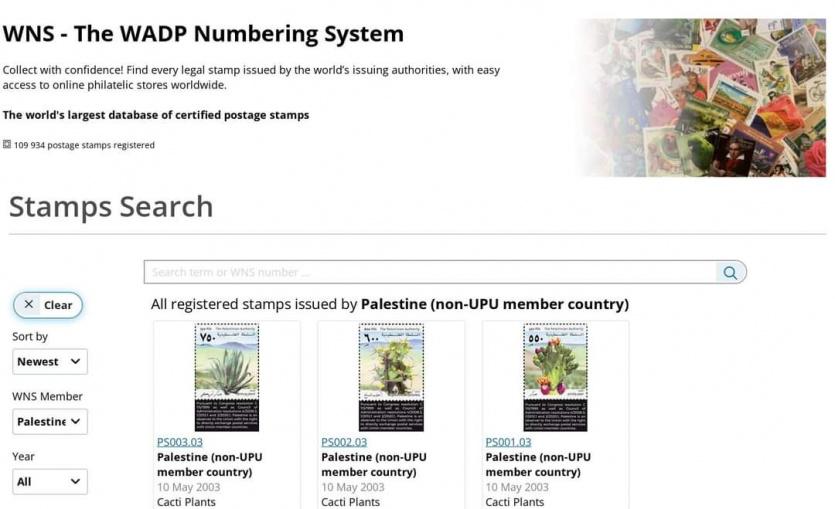 توثيق الطوابع الفلسطينية في أكبر قاعدة بيانات دولية WNS