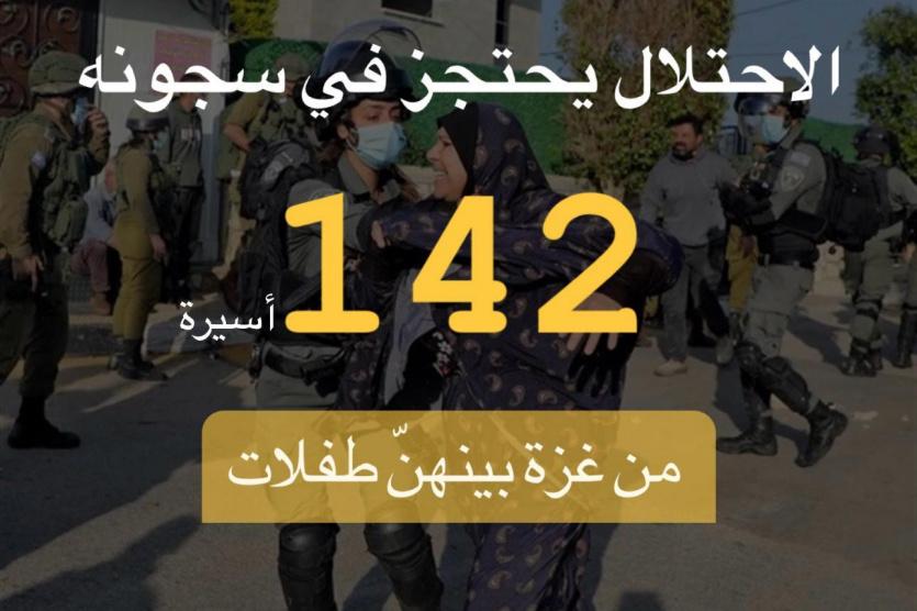 كشفت هيئة شؤون الأسرى والمحررين ونادي الأسير الفلسطينيّ، عن احتجاز 142 أسيرة من النساء والفتيات من غزة في سجون الاحتلال الإسرائيلي، بينهن طفلات رضيعات، ونساء مسنّات، جرى اعتقالهنّ خلال الاجتياح البري لغزة.