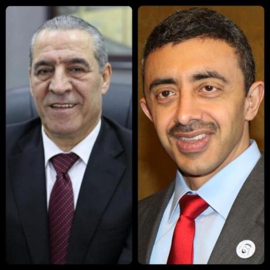 التقى أمين سر اللجنة التنفيذية لمنظمة التحرير الفلسطينية حسين الشيخ، الخميس، وزير الخارجية الإماراتي الشيخ عبد الله بن زايد آل نهيان، في العاصمة الإماراتية أبو ظبي.