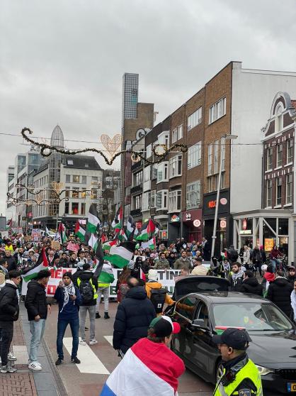 اقام التجمع الديمقراطي الفلسطيني في هولندا واتحاد الشباب الأوروبي الفلسطيني مظاهرة حاشدة من أمام محطة قطارات مدينة "اوترخت" وسط هولندا باتجاه مركز المدينة، تحت شعار "أوقفو الحرب على غزة" وتنديدا بموقف الحكومات الاوروبية لصمتها لما يقوم به جيش الاحتلال الاسرائيلي من جرائم ابادة جماعية بحق الشعب الفلسطيني.