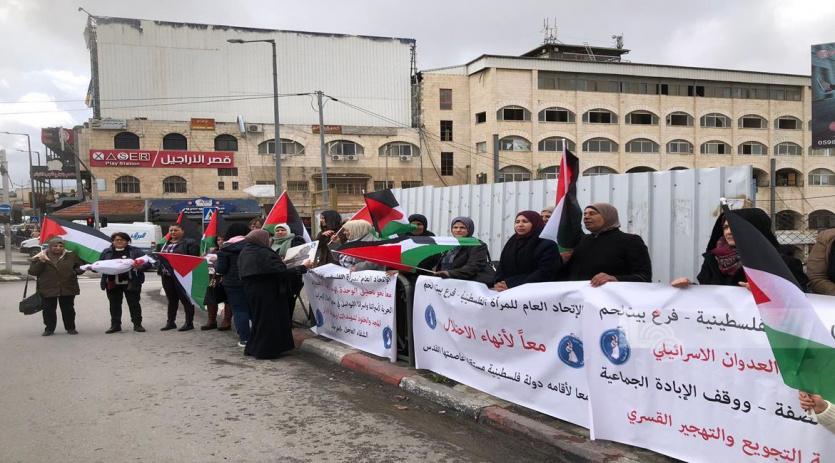 وقالت رئيسة الاتحاد العام للمرأة الفلسطينية في بيت لحم، أحلام الوحش، "بينما نساء العالم يحتفلن بيوم المرأة بأبهى صوره، نجد المرأة الفلسطينية تخوض نضالها وكفاحها ضد المحتل لنيل حريتها وحرية أبناء شعبها، ولا تزال تحلم بأن تعيش في كنف دولة مستقلة وعاصمتها القدس".