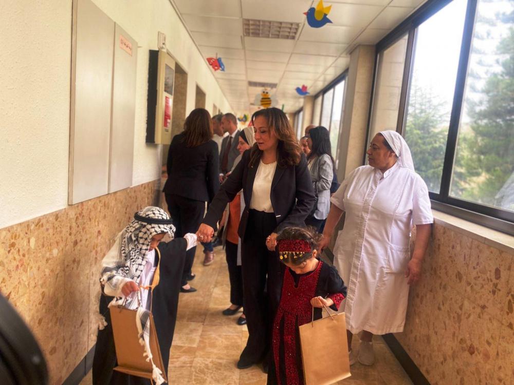 وتفقدت الوزيرة برفقة وزير السياحة هاني الحايك ونجاح فراج الأحمر مديرة الدائرة الاجتماعية في محافظة بيت لحم، ووكيل الوزارة خالد الطميزي، ومدير مديرية بيت لحم سائدة الأطرش، والوكيل المساعد لشؤون المحافظات الجنوبية أكرم الحافي، والوكيل المساعد للرعاية والحماية الأسرية خلود عبد الخالق، وتمام خضر مدير عام الجمعيات الخيرية، عدداً من المؤسسات في المدينة، حيث زارت مؤسسة قرى الأطفال (SOS)، واطمأنت على أطفال قطاع غزة الذين قدموا إلى المؤسسة لحين انتهاء العدوان الإسرائيلي على القطاع.