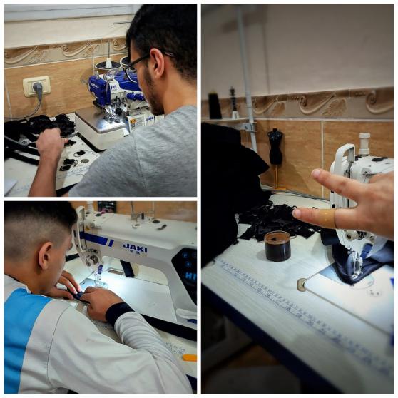 في خيمتها البسيطة التي نزحت إليها، تحاول أن تُبقي شيئًا من شغفها على قيد الحياة. تخيط حسب الطلب، وبإمكانيات معدومة، فقط كي لا تنقطع عن الحلم الذي كان يومًا ينبض بالحياة.