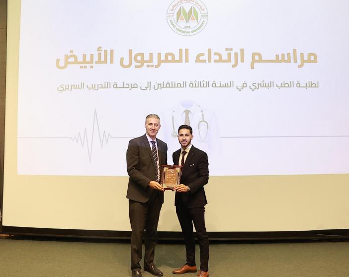 نظمت الجامعة العربية الأمريكية، في حرمها بمدينة رام الله، فعالية "ارتداء المريول الأبيض" لطلبة كلية الطب البشري، إيذانًا بانتقال الطلبة إلى المرحلة السريرية، بحضور معالي وزير الصحة الدكتور ماجد أبو رمضان، وعدد من مدراء المستشفيات والمراكز الطبية في الضفة الغربية، وكادر الجامعة الأكاديمي والإداري، وأهالي الطلبة.