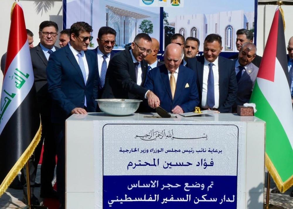 وخلال اللقاء، وضع الوزير حسين، إلى جانب السفير الرويضي، حجر الأساس لبيت إقامة السفير الفلسطيني داخل مقر السفارة الفلسطينية في بغداد، بحضور عدد من كبار المسؤولين العراقيين، وممثلي السلك الدبلوماسي والإعلام المحلي، والذي يعد خطوة رمزية وسياسية لتعزيز الحضور الفلسطيني في العراق.