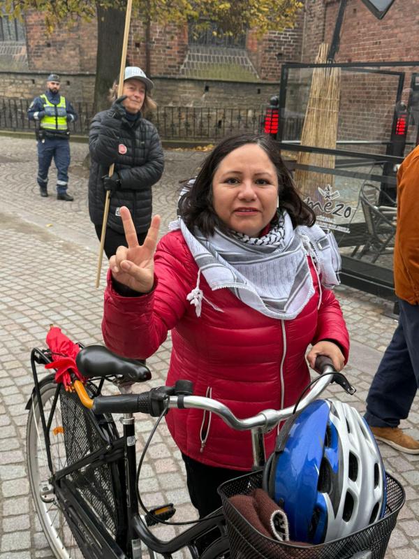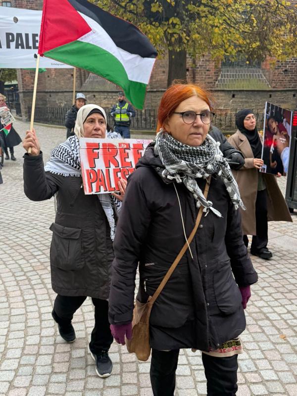 وفي ختام المظاهرة، ألقت السيدة كلوديا ڤيلينسكي، ممثلة حزب اليسار السويدي (Vänsterpartiet)، كلمة الحزب، عبّرت فيها عن تضامن حزب اليسار الكامل مع الشعب الفلسطيني.