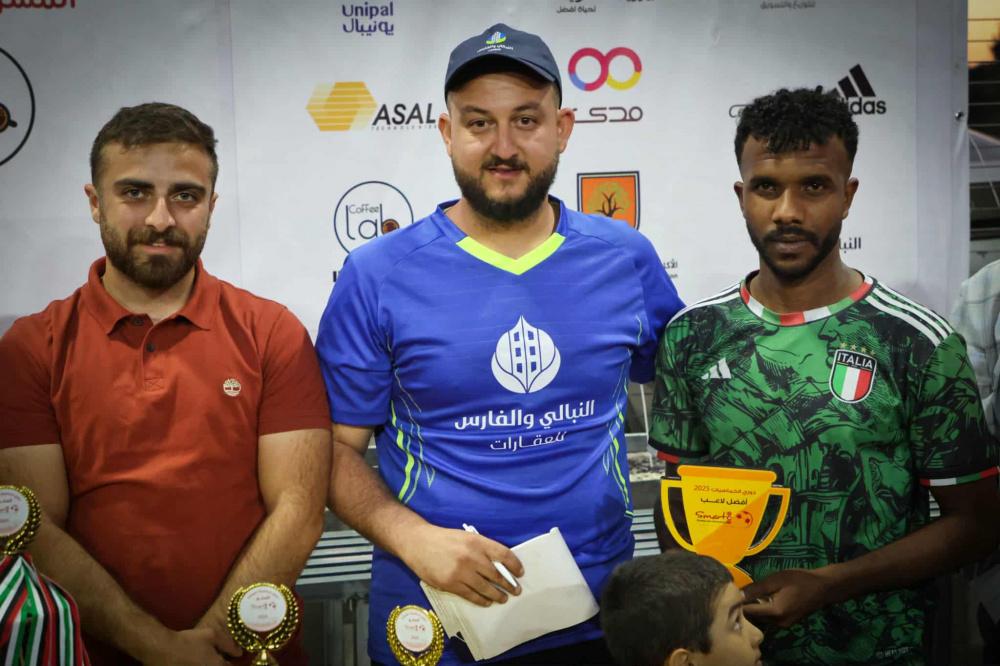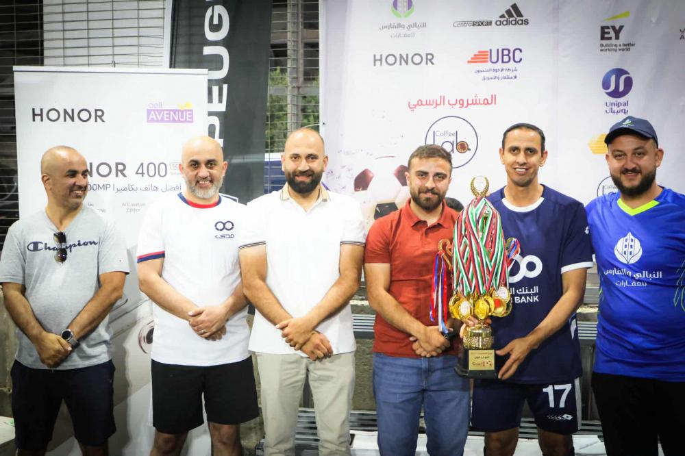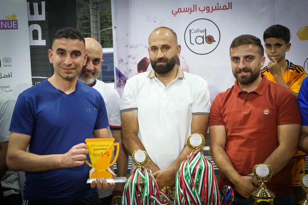 وفي نهاية البطولة تم تتويج الفرق الفائزة بحضور ممثلي الشركات الراعية والفرق المشاركة،وقد تم تقديم جوائز البطولة على النحو التالي، أفضل حارس مرمى اللاعب منير قنداح من فريق البنك العربي، وأفضل لاعب مروان ترابين من فريق شركة عابدين اليت هوم، وهداف البطولة اللاعب محمود أبو عيوش من فريق شركة بيرزيت للأدوية والفريق المثالي شركة يونيبال وكأس المركز الثالث عابدين اليت هوم وكأس المركز الثاني وميداليات فضية الاكاديمية العربية للتعليم الحديث وكأس المركز الأول وميداليات ذهبية فريق البنك العربي.