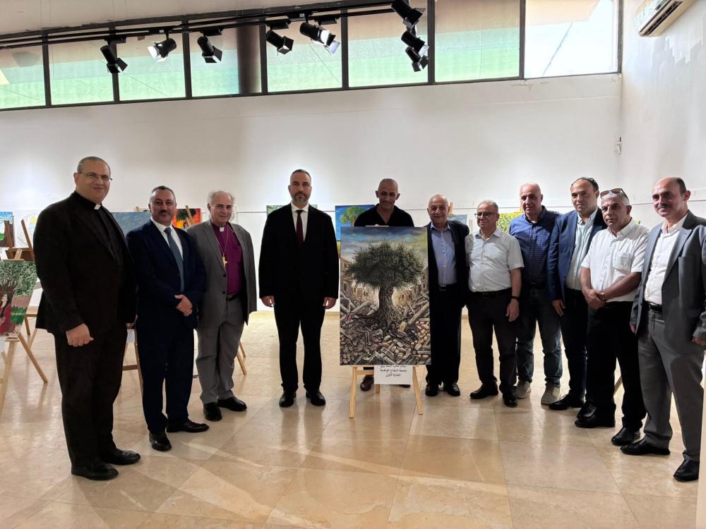 وتجول المشاركون في المعرض الفني لمسابقة (باقون كجذور الزيتون) لطلبة مؤسسات التعليم العالي، الذي نظم بالشراكة مع وزارة التربية والتعليم العالي مع 11 جامعة، وشمل 91 لوحة.