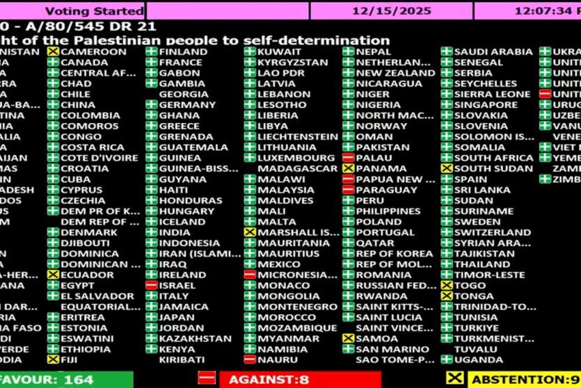 اعتمدت الجمعية العامة للأمم المتحدة، اليوم الاثنين، بأغلبية ساحقة، قرارا يؤكد على حق الشعب الفلسطيني في تقرير مصيره.