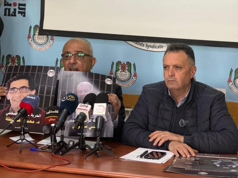 وقال نقيب الصحفيين الفلسطينيين ناصر أبو بكر، خلال مؤتمر صحفي عُقد في مقر النقابة بمدينة رام الله، إن النقابة تستعرض تقرير الحريات لعام 2025 بالتوازي مع إجراءات عربية ودولية لملاحقة قتلة الصحفيين الفلسطينيين، مشيرًا إلى أن النقابة تواصل منذ بداية العدوان العمل على عدة جبهات، من بينها حملات المناصرة مع النقابات ومنظمات المجتمع المدني ووسائل الإعلام في مختلف دول العالم.