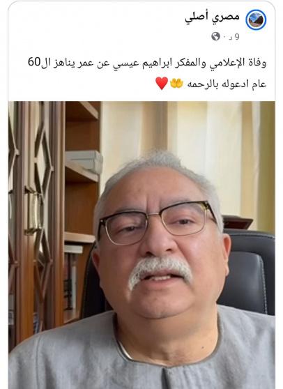 ونشرت صفحة على موقع فيسبوك تحمل اسم «مصري أصلي» منشورًا جاء فيه: «وفاة الإعلامي والمفكر إبراهيم عيسى عن عمر يناهز 60 عامًا، ادعوا له بالرحمة»، وهو ما أثار حالة من الجدل والتساؤلات بين المتابعين.