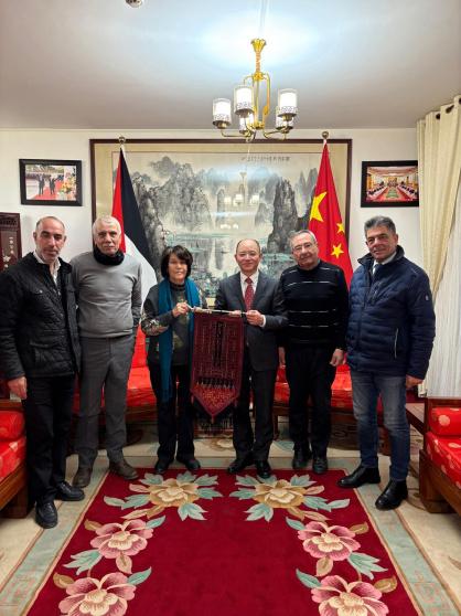 بمناسبة قرب انتهاء فترة عمله في دولة فلسطين، التقى أمس الأربعاء وفد من المكتب السياسي للجبهة الديمقراطية لتحرير فلسطين بسعادة السفير الصيني لدى دولة فلسطين في مقر السفارة في رام الله، وضم الوفد ماجدة المصري نائب الامين العام للجبهة ورمزي رباح عضو المكتب السياسي للجبهة وعضو اللجنة التنفيذية لمنظمة التحرير الفلسطينية، وابراهيم ابو حجلة وحلمي الأعرج عضوي المكتب السياسي للجبهة.