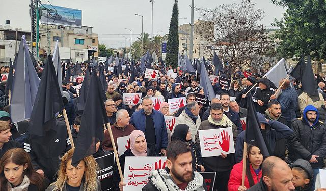 مظاهرة حاشدة في سخنين ضد الجريمة وتواطؤ الشرطة الإسرائيلية