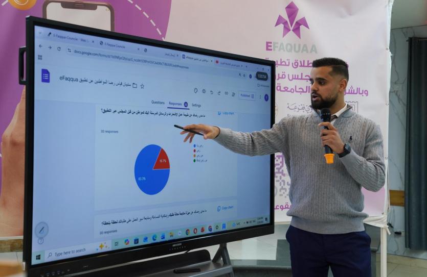 كما ثمن تعاون مجلس قروي فقوعه وثقته بالجامعة وطلبتها، داعيا أهالي القرية إلى التفاعل مع التطبيق والاستفادة من خدماته، مشيرا إلى أن المجلس القروي يُعد أول مجلس يستخدم الخدمات الرقمية على مستوى محافظة جنين، والرابع على مستوى الضفة الغربية.
