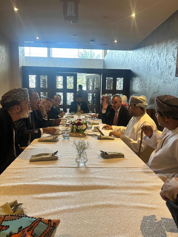 واجتمع سعادة السفير الرويضي خلال مشاركته المؤتمر والوفد الفلسطيني التجاري برئيس مجلس ادارة غرفة تجارة مسقط الشيخ فيصل الرواس، حيث جرى خلال اللقاء بحث تعزيز العلاقات الاقتصادية بين فلسطين وسلطنة عُمان، ودور القطاع الخاص في تعزيز هذه العلاقة، وفتح الأسواق العمانية والخليجية امام المنتج الفلسطيني، وتسهيلات للمستثمر الفلسطيني بما يساهم في فتح آفاق تجارية وفرص عمل تعزز من دعم الاقتصاد والتنمية في فلسطين، وتم الاتفاق على جملة من التوصيات كخطة عمل مشتركة خلال العام 2026 بما يعزز من دعم السلطنة للاقتصاد والقطاع الخاص الفلسطيني.