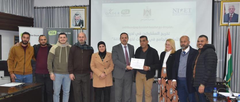 وتخلل الحفل عرض دليل ملموس على نجاحات البرنامج، حيث قدمت مديرة متابعة وتقييم البرامج في المعهد الوطني د. إيمان النجار عرضاً مفصلاً لنتائج التقييم النهائي، وأظهرت النتائج مستويات رضا عالية من المشاركين عن محتوى التدريب وأساليب التدريس، كما أثبتت وجود تأثير إيجابي ملحوظ على زيادة معارفهم ومهاراتهم العملية في مجالات الدعم النفسي الاجتماعي والتصميم الشامل للتعلم.