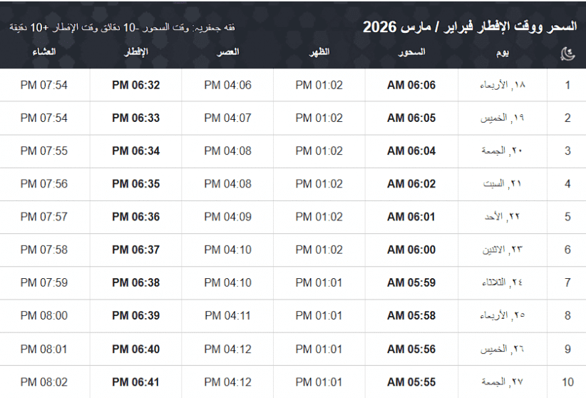 إمساكية رمضان 2026 في الجزائر جدول مواقيت الصلاة وموعد الإفطار والإمساك مع اقتراب الشهر الفضيل، تتزايد عمليات البحث عن الإمساكية لعام 1447 هجري.