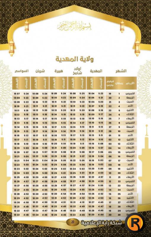 تحميل إمساكية رمضان 2026 في تونس | مواقيت الصلاة ووقت الفجر والمغرب في جميع الولايات