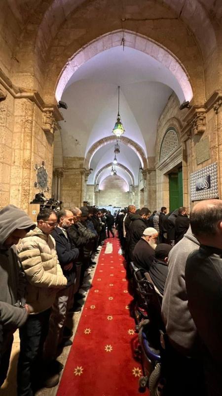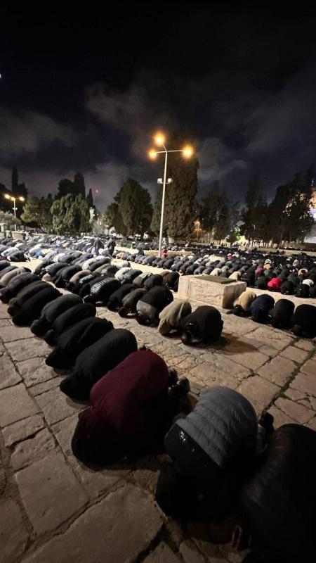 وقالت محافظة القدس، في بيان مقتضب، إن 60 ألف مصلٍ أدوا صلاتي العشاء والتراويح في رحاب المسجد الأقصى، رغم القيود والإجراءات المشددة التي فرضتها قوات الاحتلال الإسرائيلي على دخول المصلين.