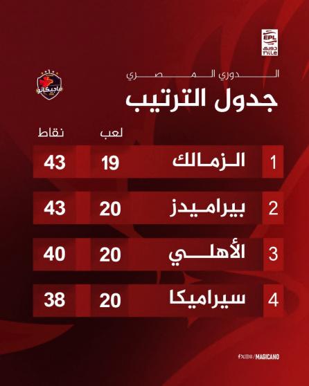 مركز الأهلي وبيراميدز في جدول ترتيب الدوري المصري 2026 بعد مباريات اليوم