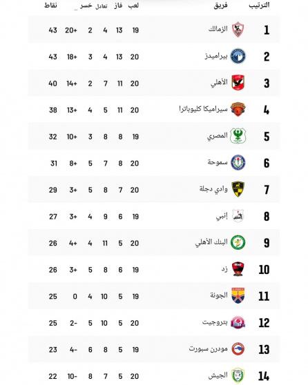 وتقدم بيراميدز نحو الوصافة بعد أن حصل على 3 نقاط إضافية ليكون رصيده 43 نقطة، فيما أضبح رصيد البنك الأهلي 26 في المركز التاسع.