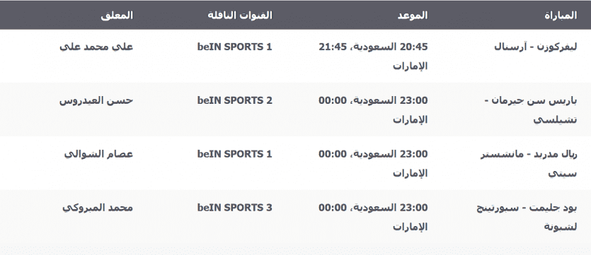 ويحتضن ملعب سانتياجو برنابيو مواجهة نارية بين ريال مدريد ومانشستر سيتي، بينما يستضيف ملعب حديقة الأمراء مباراة قوية تجمع بين باريس سان جيرمان وتشيلسي.