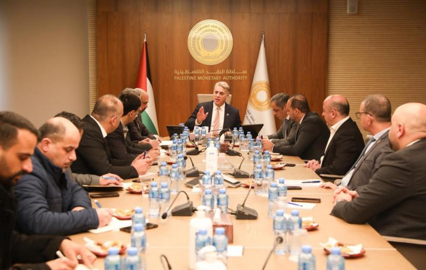 عقدت سلطة النقد لقاءً مع نقابة المهندسين واتحاد المقاولين لمناقشة تفاصيل وآليات تطبيق قانون خفض استخدام النقد، بحضور معالي محافظ سلطة النقد السيد يحيى شنار، ونقيب المهندسين م. طارق عبد المجيد الزرو، ورئيس اتحاد المقاولين الفلسطينيين د. أحمد القاضي، والوفد المرافق لهم، بحضور نائب محافظ سلطة النقد السيد محمد مناصرة وعدد من مديري الدوائر في السلطة.