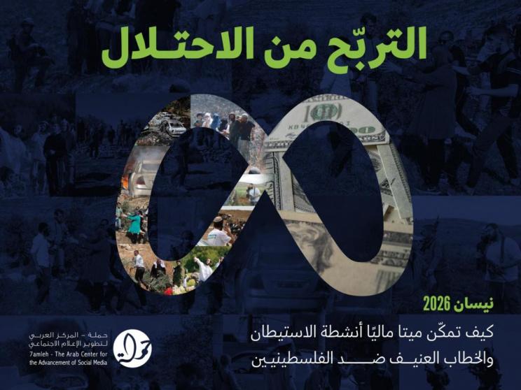 أصدر حملة - المركز العربي لتطوير الإعلام الاجتماعي تقريرًا جديدًا بعنوان "التربّح من الاحتلال: كيف تمكّن ميتا ماليًا أنشطة الاستيطان والخطاب العنيف ضد الفلسطينيين"، يكشف فيه كيف تتيح شركة ميتا لصفحات إسرائيلية يمينية متطرفة وصفحات مرتبطة بالمستوطنين، ووسائل إعلام متطرّفة تحقيق أرباح مالية عبر منصاتها، رغم نشرها محتوى عنيفًا وعنصريًا وتحريضيًا ضد الفلسطينيين/ات، ورغم ارتباط عدد منها بالترويج المباشر للمشروع الاستيطاني غير القانوني، وللعنف والهجمات المتفشية ضد الفلسطينيين/ات في الضفة الغربية.