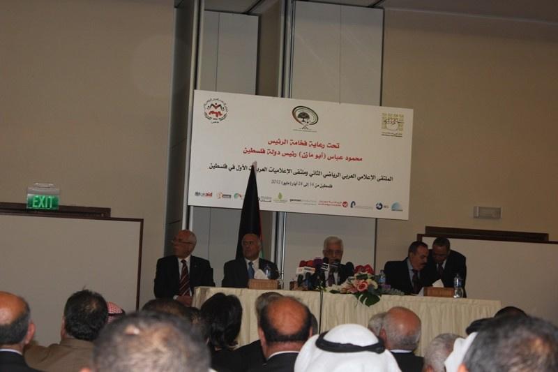 افتتح الرئيس الفلسطيني محمود عباس ملتقى الإعلام العربي الرياضي الثاني، وملتقى الإعلاميات العربيات الرياضيات الأول في فلسطين، بتنظيم من الاتحاد الفلسطيني لكرة القدم، والاتحاد العربي للصحافة الرياضية.