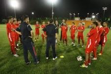 وكان الفريق قد اجرى تمريناته على ملاعب مدينة اسباير الرياضية بالدوحة حيث استمرت قرابة الساعة ركز خلالها الجهاز الفني للفريق على اجراء تمارين خفيفة وتمارين اخرى من اجل انسجام اللاعبين المحترفين المنضمين للفريق وهم محمد سمارة وعمر جعرون ورمزي صالح وعماد زعترة .
