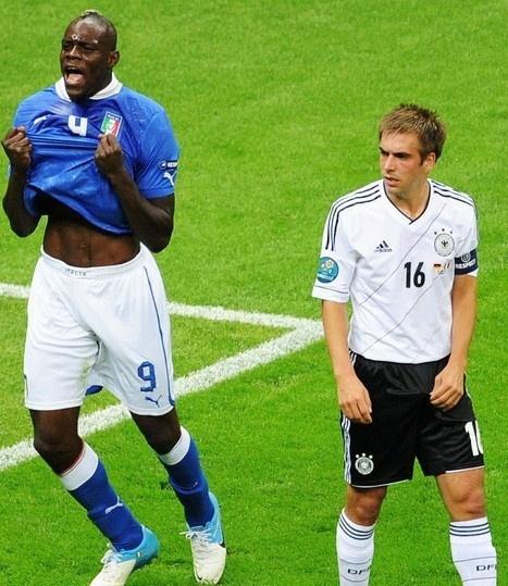 الشوط الأول انتهى بتقدم الطليان بثنائية "سوبر ماريو" العجيب والغريب ماريو بالوتيللي في الدقيقتين (20 و36)، فيما قلص الدولي الألماني مسعود أوزيل النتيجة لمنتخب بلاده من ركلة جزاء في الدقيقة (92).