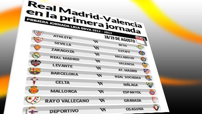 وتقام الجولة الأولى من الموسم الجديد لليغا بين يومي 18 و20 آب/أغسطس، حيث يلتقي ريال مدريد مع فالنسيا وبرشلونة مع سوسييداد وإشبيلية مع خيتافي وأتلتيك بلباو مع ريال بيتيس وليفانتي مع أتلتيكو مدريد وريال سرقسطة مع بلد الوليد وسيلتا فيغو مع ملقا وريال مايوركا مع إسبانيول ورايو فاليكانو مع غرناطة وديبورتيفو لاكورونا مع أوساسونا.