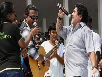 أسعد أسطورة كرة القدم الأرجنتيني دييغو مارادونا الآلاف من مشجعي كرة القدم في جنوب الهند، اليوم الأربعاء، حيث استعرض مهاراته الكروية وردد الأغاني ورقص مع الجماهير.