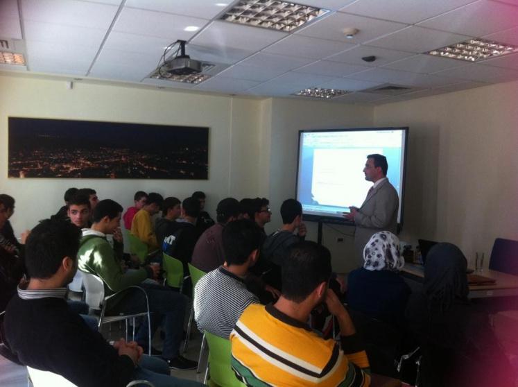 ومن ثم قام الطلاب بالاستماع الى محاضرة القاها السيد محمد حجاز مدير التداول في بورصة فلسطين، حيث شرح للطلاب ماهية البورصة و ميزات بورصة فلسطين عن غيرها، و تحدث
