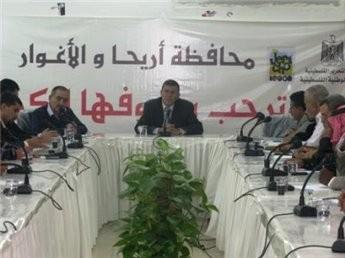 دعا ماجد الفتياني محافظ اريحا والاغوار اعضاء االمجلس التنفيذي لمحافظة اريحا والاغوار لاعداد التقارير النهائية لما تم انجازه من قبل الدوائر والمؤسسات الرسمية بالمحافظة عن العام المنصرم وضرورة وضع الخطوط العريضة لاحتياجات ومتطلبات الدوائر الرسمية والحكومية لعام 2013، وذلك خلال تراسه الاجتماع الختامي لاعضاء المجلس التنفيذي لمحافظة اريحا والاغوار للعام الحالي 2012.