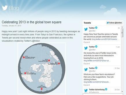 حيث أشار الموقع إلى أن الملايين من المستخدمين قاموا بالتغريد على حساباتهم عند دخول اللحظات الأولى من عام 2013 كلٌ حسب منطقته الزمنية.