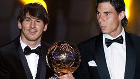 هنئ اللاعب الاسباني رافاييل نادال المصنف الأول على العالم سابقا في التنس اللاعب الارجنتيني ليونيل ميسي بفوزه بجائزة الكرة الذهبية للمرة الرابعة في تاريخه على حسابه الشخصي في موقع التواصل الإجتماعي تويتر أمس وهي الطريقة الجديدة التي يحاول اللاعبين الآن بها تهنئة الآخرين في هذه المناسبات لسرعة الوصول إليهم.