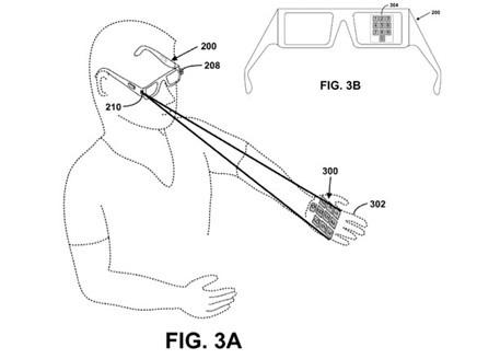 ووفقاً لبراءة الاختراع، فإنه بفضل دمج بروجيكتور صغير جداً يعمل مع كاميرا نظارة جوجل المستقبلية، يكون بالإمكان إسقاط لوحة مفاتيح ليزرية افتراضية على معصم أو راحة يد مرتدي النظارة، لتستخدم كجهاز إدخال لحاسوب جوجل الصغير، الذي يبدو على شكل نظارة.
