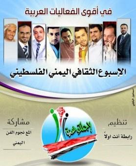 ويضم الوفد اليمني 29 مشاركاً من ألمع نجوم الفن اليمني بين منشدين وشعراء وممثلين وفرقة الفن الشعبي ومرافقين، وسيتضمن برنامج الأسبوع الثقافي معرض صور من اليمن وتراثه، وصور عن تضامن الشعب اليمني مع فلسطين، وأزياء شعبية ومنتجات يمنية.