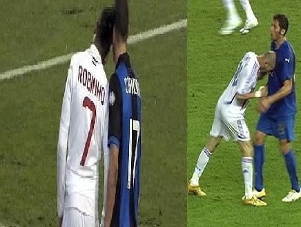 أعاد نجم نادي آي.سي.ميلان الإيطالي، الدولي البرازيلي روبينهو، للأذهان النطحة الشهيرة التي وجهها صانع ألعاب المنتخب الفرنسي زين الدين زيدان إلى صدر لاعب المنتخب الإيطالي ماركو ماتيراتزي، والتي تلقى على إثرها البطاقة الحمراء في نهائي مسابقة كأس العالم 2006 والتي أقيمت في العاصمة الألمانية برلين.