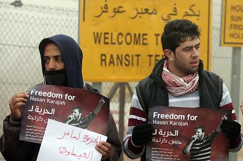 شارك ناشطون شباب في اعتصام أمام سجن عوفر غرب رام الله، اليوم الثلاثاء، تضامنا مع الأسير الناشط الحقوقي حسن كراجة، الذي اعتقلته قوات الاحتلال قبل عدة أسابيع، من منزله في قرية صفا غرب رام الله.