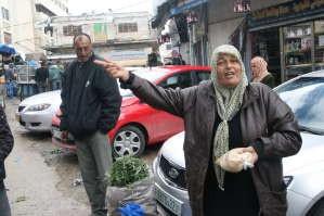 تستهجن بائعة الخضار التي تزرعها بيديها مفيدة صلاح، كما بائع الزيتون و الجبنة كما سالم سميرات- كلاهما يستهجنان ما قاله المتحدث بإسم الشرطة في رام الله عن أن تواجدهما و الباعة الفقراء الآخرين على رصيف سوق الحسبة يلحق ضررا بـ"المظهر الحضاري" للمدينة..