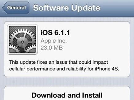 وبعد إخبار "فودافون بريطانيا" لشركة "آبل" بهذه المشاكل والثغرات، أطلقت الأخيرة تحديثاً خاصاً من نظام "آي أو إس 6.1.1"، لحل مشكلة الاتصال الخليوي التي طالت هاتف "آي فون 4 إس"، ولم يُذكر في التحديث بعد ما إذا كان متضمناً إصلاح الخلل المتعلق بالمشاكل الأخرى المتمثلة في استنزاف البطارية بشكل سريع وارتفاع درجة حرارة الهاتف.