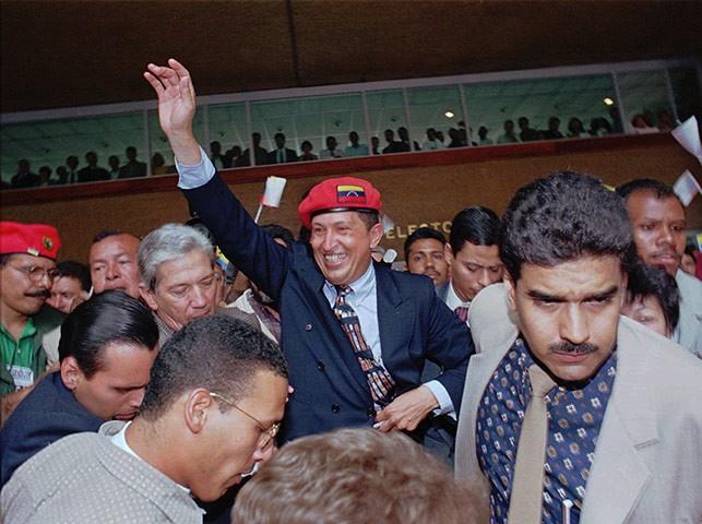كان اول ظهور لشافيز، المظلي السابق في الجيش، كزعيم لانقلاب فاشل عام 1992، لكنه وبعد ست سنوات من ذلك احدث نقلة مدوية في الدوائر السياسية الفنزويلية واستطاع ان يستغل موجة الغضب من النخبة السياسية التقليدية وفاز برئاسة البلاد.