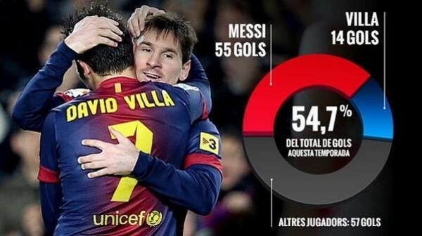 ويُعول المدير الفني للفريق الكتالوني، تيتو فيلانوفا، بشكل كبير على الثنائي ميسي - فيا، إذ أظهرت الإحصائيات أن لاعبي "البلاوغرانا" قد سجلوا أهدافاً بنسبة 54.7% من إجمالي أهداف برشلونة هذا الموسم، على الرغم من أن "فيّا" قد بدأ معظم مباريات الموسم من على دكة البدلاء، ليصل اللاعبان إلى تسجيل 69 هدفاً من إجمالي 126 هدفاً سجلها برشلونة في المسابقات الأوروبية كافة، بواقع 55 هدفاً لميسي، و14 هدفاً لـ"فيّا".