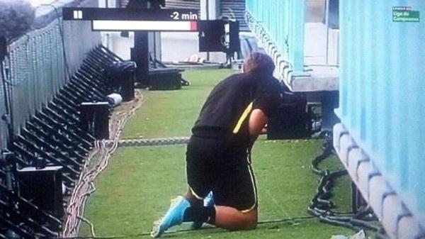 وانتظر ليمان ابتعاد الكرة عن منطقة مرماه، ليغادر حدود الملعب ويتجه نحو إحدى اللوحات الإعلانية خلف المرمى، ليتبول فيما المباراة تسير بشكل طبيعي ومن ثم يعود إلى عرينه، دون أن يلحظه الحكم!
