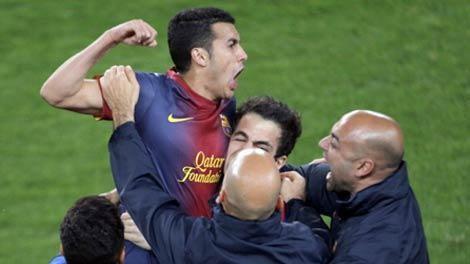 هدف التعادل لبرشلونة بتسديدة صاروخية من بيدرو في الدقيقة 70 بعد لعبة جماعية رائعة بين ميسي وفيا وبيدرو.